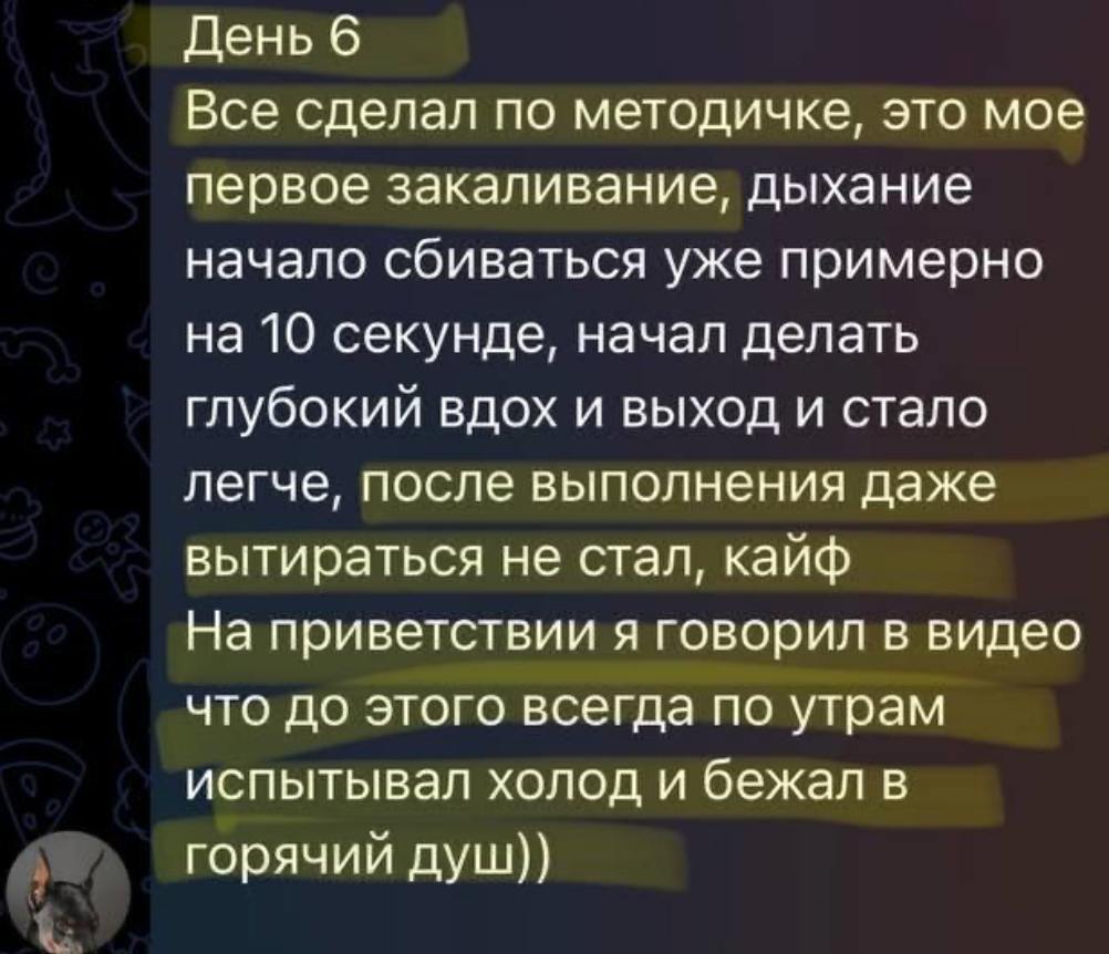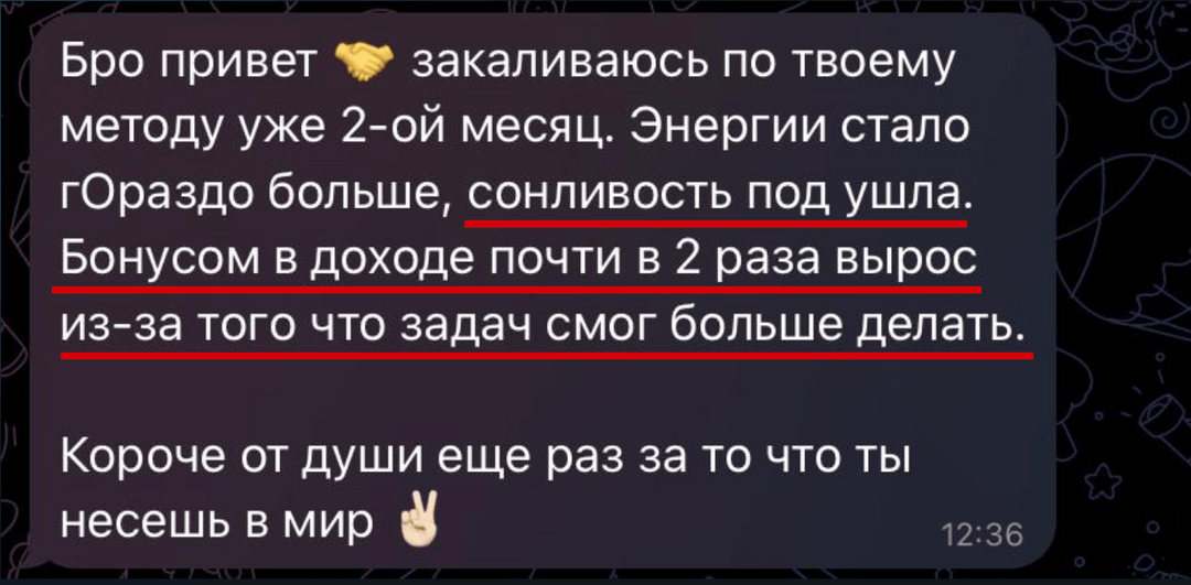 вдруг не сможешь закаляться 3 минуты в ледяной воде из-под душа через 3 недели выполнения практик — я верну деньги.